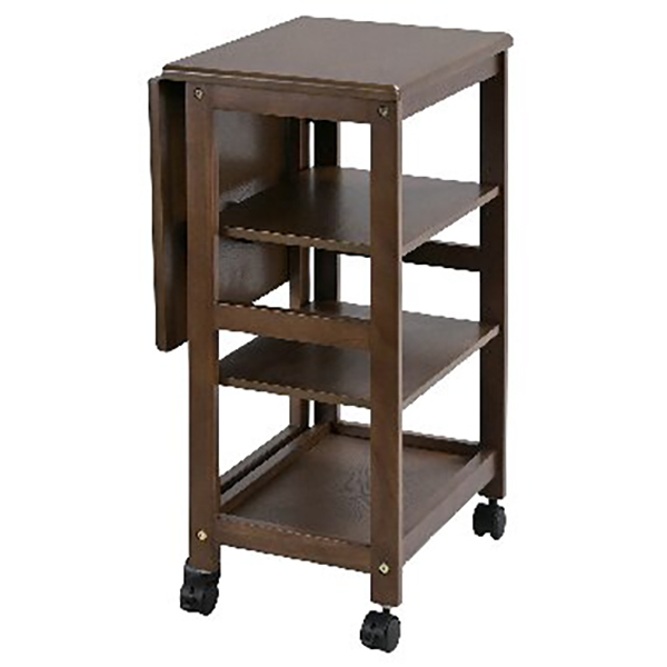 耐荷重:天板約10Kg、地板約5Kg、棚板約2Kg(1枚あたり)。お客様組立品。天板を広げれば、作業スペースを拡張できるバタフライワゴンです。使わない時は、天板をたたんで隙間収納として使用でき便利です。可動式の棚板2枚で置くものの高さに合わせて棚の位置を変えられる自由度の高いワゴンです。