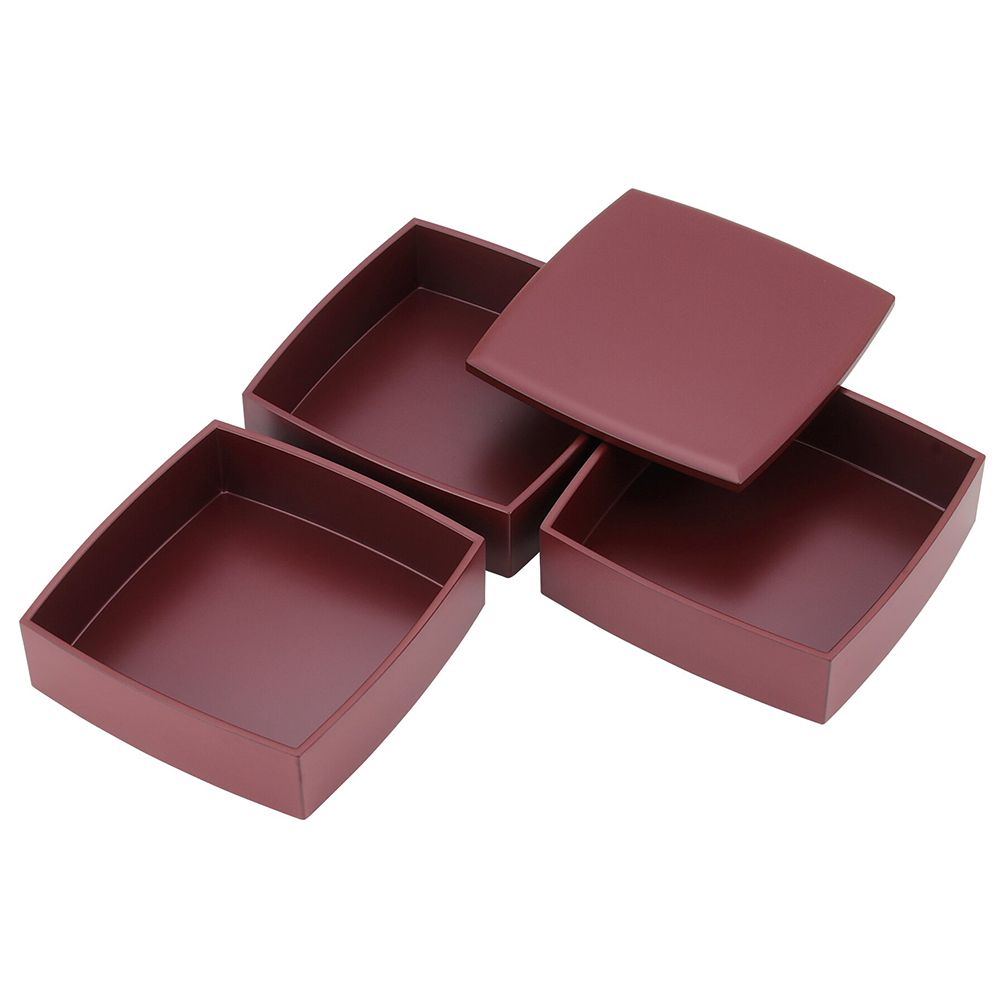 商品材料:木粉とフェノール樹脂の成型品(三段重:漆塗、雑煮椀:ウレタン塗装)