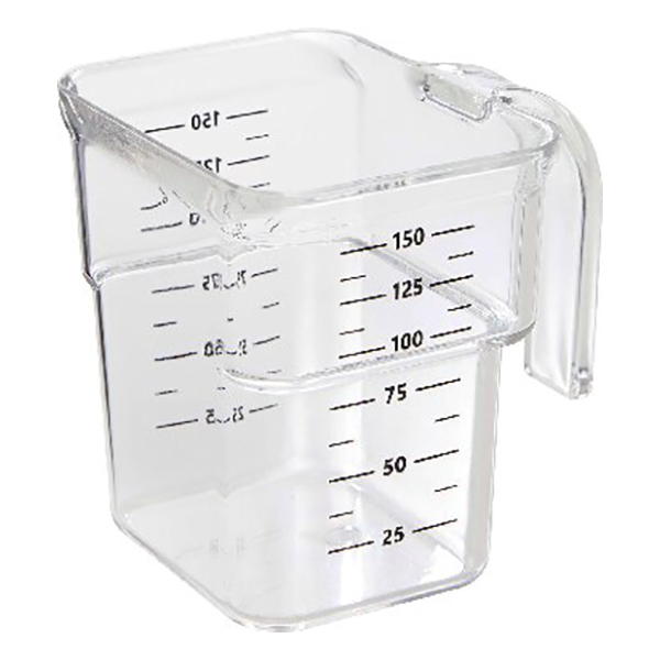 中身を確認しやすい透明蓋。残量チェックも蓋をしたままで。蓋が大きく、ペットフードを取り出しやすく、補充しやすいです。計量カップ付。