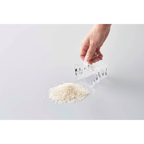 キッチンの引き出しに収納できるシンプルでスタイリッシュな米びつ。計量カップ付。
