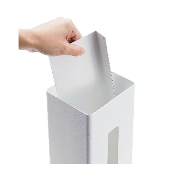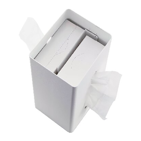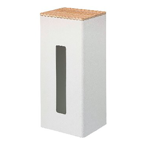 両側に取り出し口がついているので、2種類のペーパーを入れて同時に使うことが可能です。対応サイズ:一般的なサイズのティッシュペーパー・ペーパータオル、高さ約10.5cmまでのティッシュボックス(高さ約5cm以内のティッシュボックス2個)。