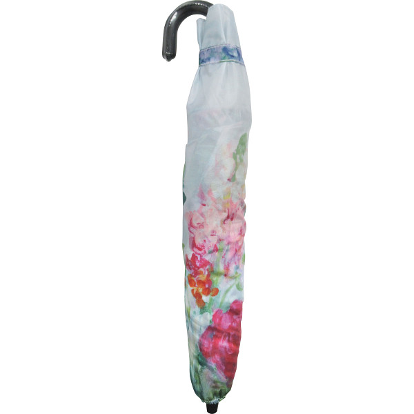 突然の雨も晴れの日もお使いいただける晴雨兼用。傘の外側にもハンドルが付いているので折りたたまずに、そのままでも束ねられて便利。同柄の収納袋付きです。海外の有名作家が描く様々な花の絵アートを傘にしました。