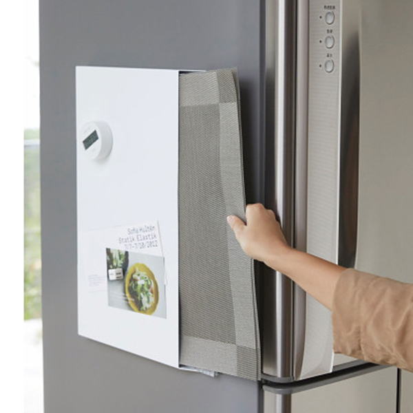 横でも縦でも!狭い隙間を利用して収納場所に困るランチョンマットをスマートに収納マグネット・置く・立てる等キッチンの隙間に合わせて、ランチョンマットを収納できます。前面はスチールなのでお手持ちのマグネットをつけられます。ランチョンマット以外にもキッチントレーやゴミ袋などを収納できます。付属のネジで壁に固定可能。スリムなのでキッチンの隙間に立てて利用できます。横向きに置いて、トレーなども収納できます。引き出しの中にビニール袋を立てて収納。食器棚の中に置いて収納。