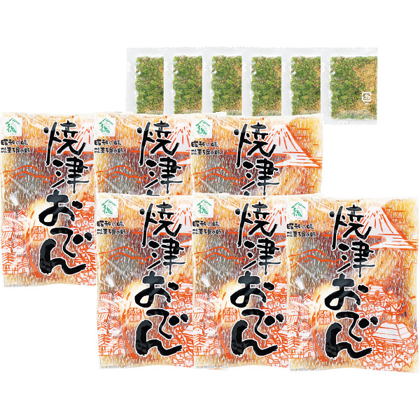 内容:焼津おでん(鶏卵、大根、黒はんぺん、こんにゃく、なると巻、ごぼう巻、ちくわ)360g×6・だし粉1.5g×6
