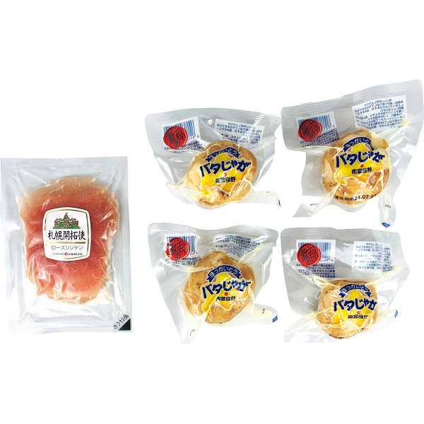 ロースシンケン生ハムは岩塩を使用ししっとりとした食感に仕上げ、セットのじゃがいもバタバタは北海道産の男爵いもをバターを使用し仕上げた常温保存可能な食品です。
