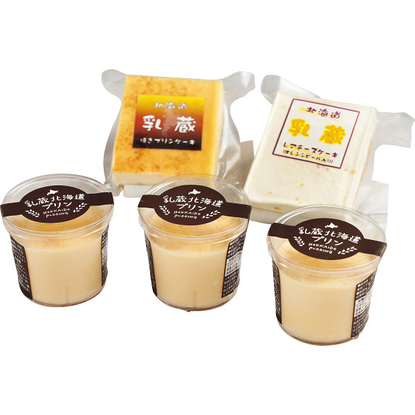 内容:北海道プリン100g×3、焼きプリンケーキ100g×1、レアチーズケーキ(オレンジピール入り)100g×1