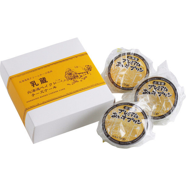 内容:ベイクドチーズケーキ(4号)×1、あいすプリン65g×3