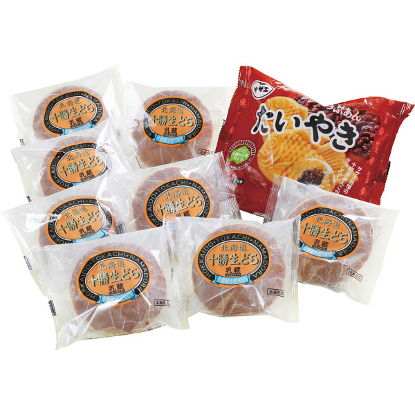 内容:北海道十勝生どら70g×8、たい焼き(90g×5尾)×1