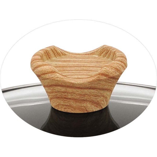内容:本体:アルミニウム合金、表面加工/内面:フッ素樹脂塗膜加工、外面:焼付塗装(底面を除く)、底部:ステンレス鋼(クロム16%)底の厚さ2.4mm、ふた:強化ガラス製器具、取っ手・ツマミ:フェノール樹脂(シリコン樹脂塗装)