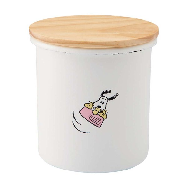 淡いリネンを想わせるような色合いで生活に寄り添う「ブレイクタイムシリーズ」。ゆったりとくつろぎムードで和やかな表情をしたスヌーピー&ピーナッツの仲間たち。穏やかな色調で統一されています。木蓋がナチュラルテイストのお部屋によく似合います。汚れやニオイがつきにくいホーロー製なので、湿気を嫌う塩や砂糖、コーヒー豆やお茶などのストックに。 お箸立てやステーショナリースタンドとして使ってもオシャレです。新潟県燕市でホーローの美しい表面にひとつひとつ絵柄を丁寧に手で貼り、仕上げているホーローです。ホーロー(琺瑯)は鉄などの金属の表面にガラス質の釉薬を高温で焼きつけたものです。色が移らず、雑菌が繁殖しにくいので衛生的にお使いいただけます。