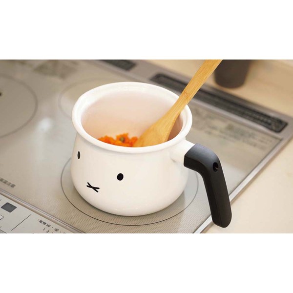 ミッフィーのおかおだけをシンプルにデザインしたマルチポット。煮る、茹でる、沸かす、揚げる、冷蔵庫にもそのまま入れられ、名前の通りマルチにお使いいただけます。ガラス蓋で調理中の中が見やすいです。ハンドル、つまみは熱くなりにくいフェノール樹脂。表面がガラス質のホーローだからニオイ・汚れが付きにくくついても洗えばスッキリ落とせます。