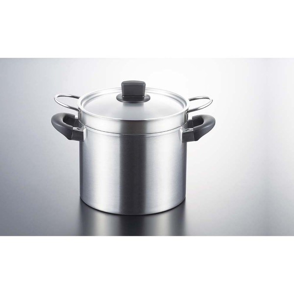 丈夫でお手入れしやすいステンレス製のパスタパンです。フタは転がりにくいツマミ形状になっているため、お料理の時も安心です!ストレートな形状の本体は大容量。たっぷりのお湯でパスタを茹でられます。カレーやシチューなど煮込み料理にも適します。本体内側には水量が確認しやすい目盛り付。ボイルストレーナー付で、茹であがったパスタの水切りがスムーズに行えます。頑丈なつくりで変形しにくい!