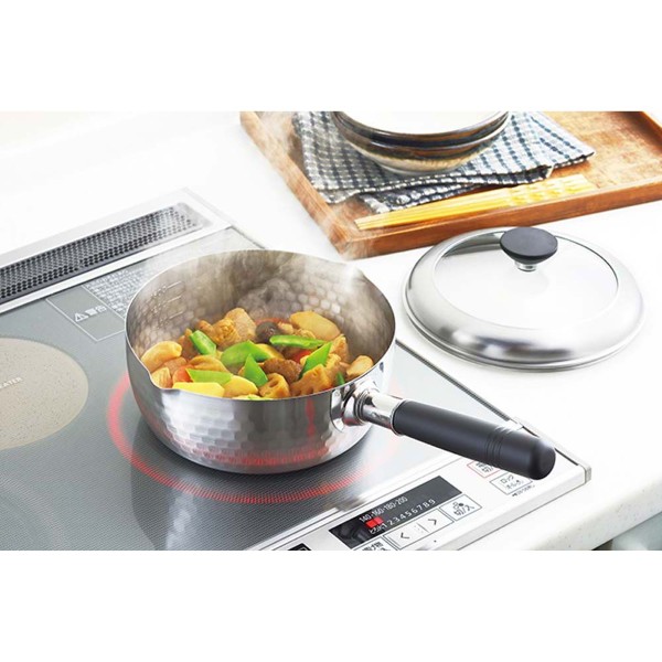 槌目模様が美しい、銀鱗の雪平鍋シリーズ。ガラス蓋なので調理中も中身が見えて便利です。安心、安全の日本製、Made in TSUBAME認定商品。