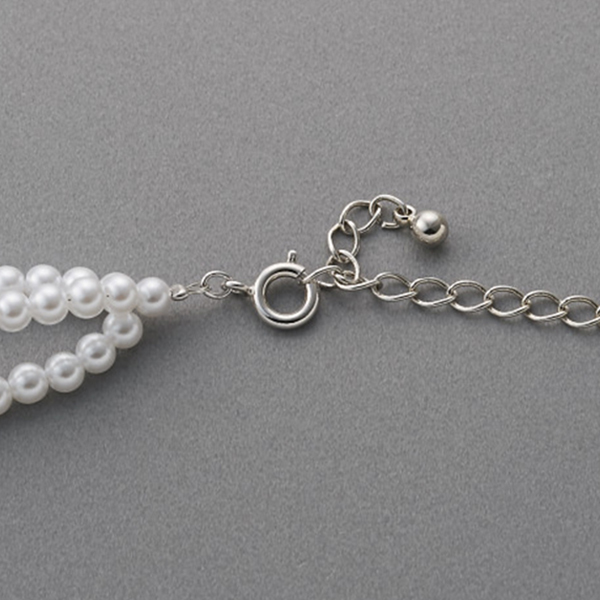 内容:●ネックレス=プラスチックパール(人工真珠・約10mm珠・約4mm珠)・ラインストーン・真鍮(ロジウムメッキ)、ブレスレット=プラスチックパール(人工真珠・約8mm珠・約4mm珠)・ラインストーン・真鍮(ロジウムメッキ)●現品ネックレス=(全長)約49cm(アジャスター約5cm含)・引き輪式留め具、ブレスレット=(全長)約19cm(アジャスター約3cm含)・引き輪式留め具