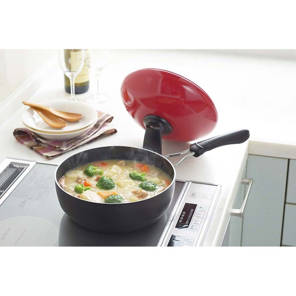 フードスタイリスト”マロンさん”のオリジナルカラー。カラフルな色合いがキッチンを彩ります♪深型のフライパンとドーム形状の蒸気口付カバーで焼き・蒸し・煮る、あらゆる調理に対応できます。ツマミを回すと蒸気口から、蒸気が出ますので、調理時の余分な水分を逃がすことができます。ヘルシーにいただける蒸し料理ができます。肉まんやシュウマイもふっくら蒸せる!ガス火・IH電磁調理器100V・200V対応。