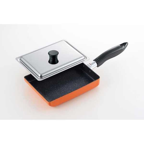 焼き面に耐久性の高いマーブルコーティングを施したフライパンです。こげつきにくく、目玉焼きや卵焼きがキレイに焼けます。フタ付で水分を逃がさないので、目玉焼きの白身もふっくら仕上がります。フチがカーブしており、玉子焼きをひっくり返しやすい構造になっています。餃子などの調理にもオススメです。ガス火・IH電磁調理器100V・200V対応。