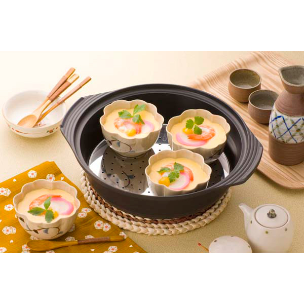土鍋風の深型両手鍋です。シュウマイや中華まんなどの蒸し料理もできる目皿付き!