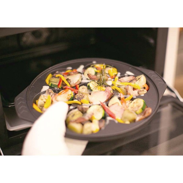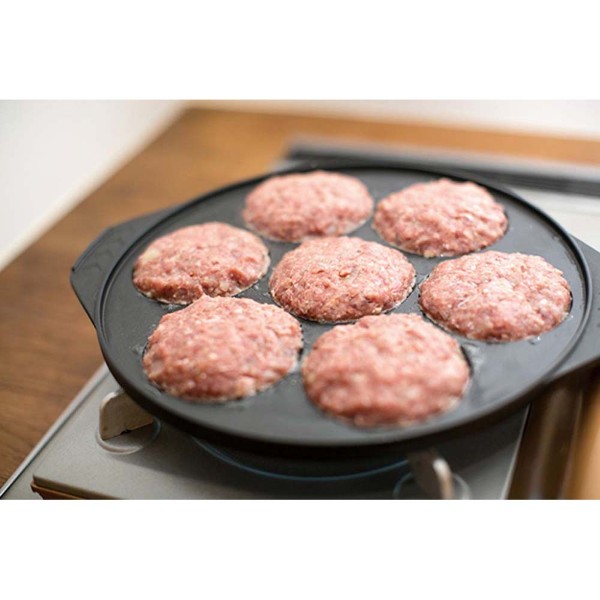同じサイズのパンケーキが7個同時に作れます。一枚のプレートで7つの料理が一度にできます。