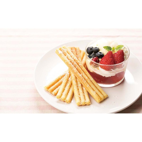 挟んで焼くだけ!スティックタイプのサンドメーカー!ホットケーキの素でかんたん!スティックパンケーキ。デザートプレートに添えたり、ジャムやクリームをディップしたりと楽しみ方はいろいろ!生地を変えるとバリエーションも豊富に!ごはんやパンにクッキー生地など!カレーにチーズフォンデュ、チョコをディップ!さらに!スティック状に切り分けずそのまま丸めてロール状に!切り口がお花のような形になってとってもおしゃれに!