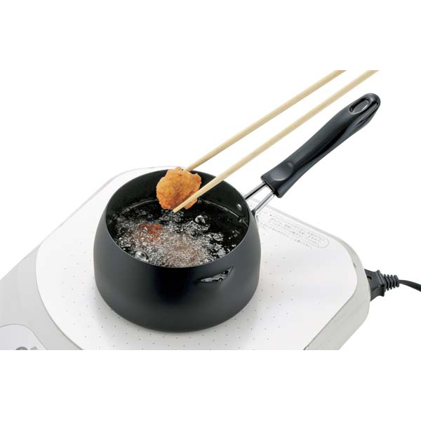揚げ物調理に適した鉄製。小回りのきくミニタイプの揚げ鍋。朝食やお弁当作りなどのちょっと揚げに便利です。油量が少なくすみ、その分加熱時間が短く経済的!保管に便利なフタ付。ガス火・IH電磁調理器100V・200V対応。