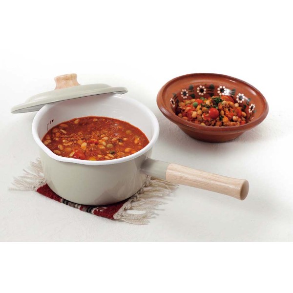 シンプルなフォルムとニュアンスカラーは飽きがこず、どんなシーンにも合います。内面には目安目盛り入りで使いやすい機能をプラス。取っ手とツマミは熱くなりにくく優しく手に馴染む天然木を採用。表面がガラス質のホーローはニオイ・汚れが付きにくくついても洗えばスッキリ落とせ、酸・塩分にも強く食品に影響がなく色も末永く保ちます