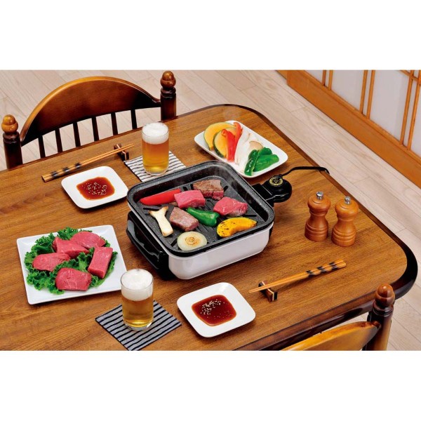 卓上で簡単に使える便利な穴あきホットプレート!焼肉以外に惣菜の温めなおしもバッチリ!本体兼用水受皿で消煙効果も!