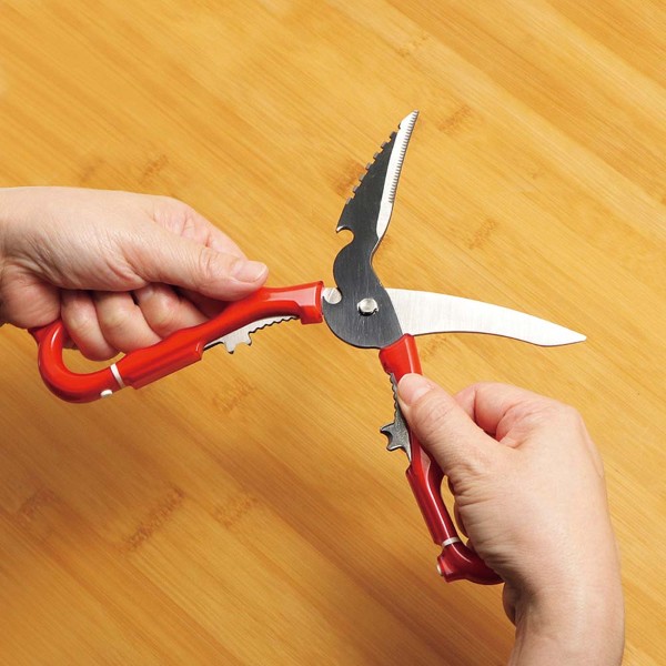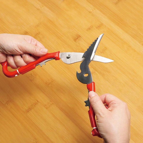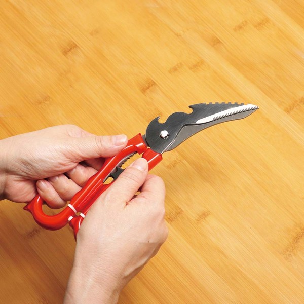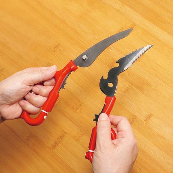 4-in-1クリアハンドルキッチンハサミ 分解式カーブ刃 グレー