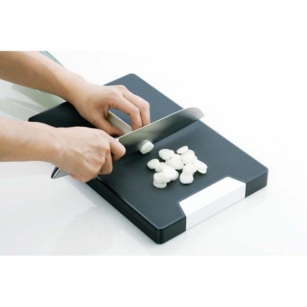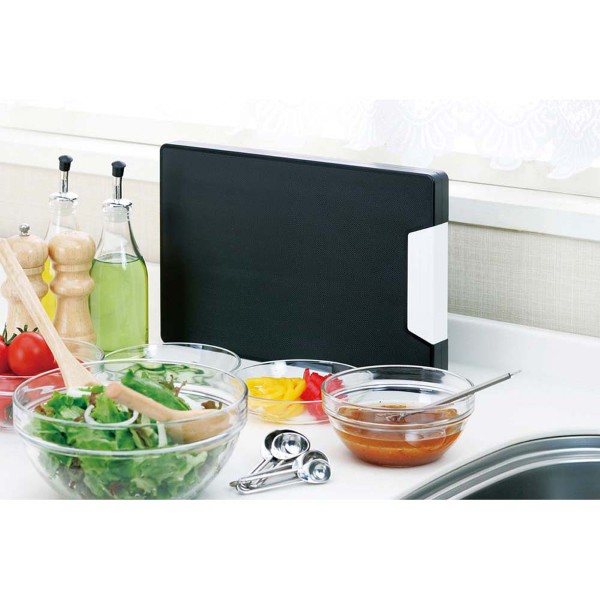 中空構造によって軽いまな板はそのままに、カラーが黒になりました。黒なので食材が見えやすく手元が安全です。視力が弱いお年寄りや視覚障害がある方にもおすすめです。まな板本体だけで、立ててスッキリ収納できます(。まな板スタンドはいりません。)抗菌剤ノバロンAGZ330使用。