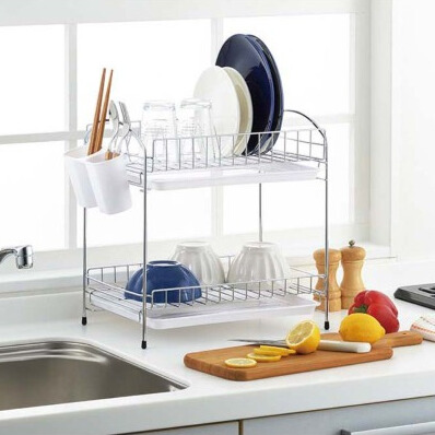 洗いものが多い日も安心!二段式の広いスペースでたくさん置ける水切りかごです。スライド式のトレーで、たまった水も簡単に取り除けます。