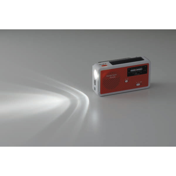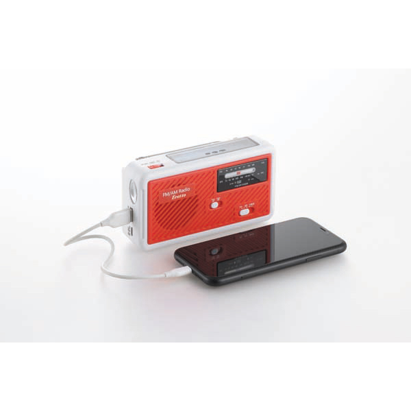 内容:本体:ABS樹脂・ポリスチレン、光源:LED1灯、バッテリー容量:1,200mA、電源:ソーラー充電・手回し充電・USB充電・単4乾電池×3本使用(別売)、機能:ライト・モバイルバッテリー・AM/FMラジオ・サイレン、付属品:USBケーブル(Atype-Ctype)
