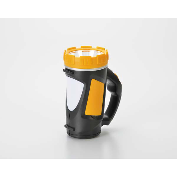 前灯約120ルーメンと側灯約90ルーメンの2通りで使えるサーチライトになります。照射距離は、約100mになります。単3乾電池×3本で約6~8時間連続使用可能です。ショルダーストラップ付。