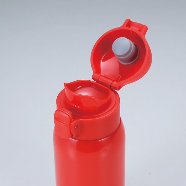ワンタッチで開閉ができる飲み口。本体は丈夫で熱が逃げにくい真空断熱構造です。