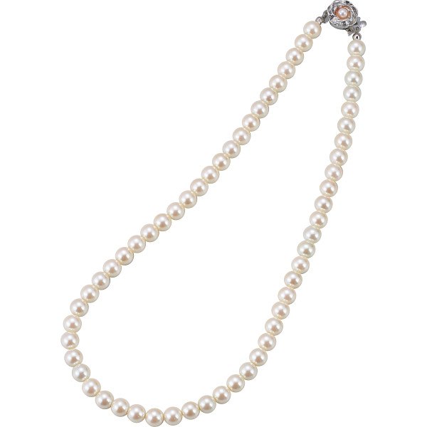 パールタイプのネックレス。直径7mmの使いやすい大きさなので、フォーマルだけでなくオフィスやカジュアルでも使えて便利です。