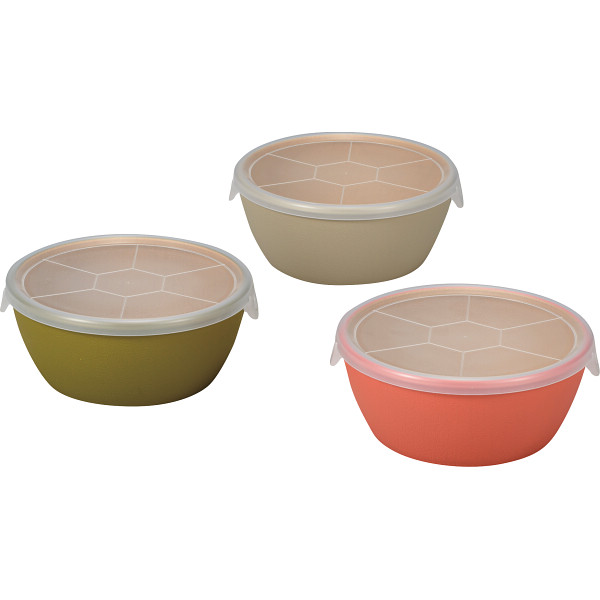 内容:ボウル(約13.3φ×5.6cm・500ml)・フタ(約13.6φ×2.5cm)各3