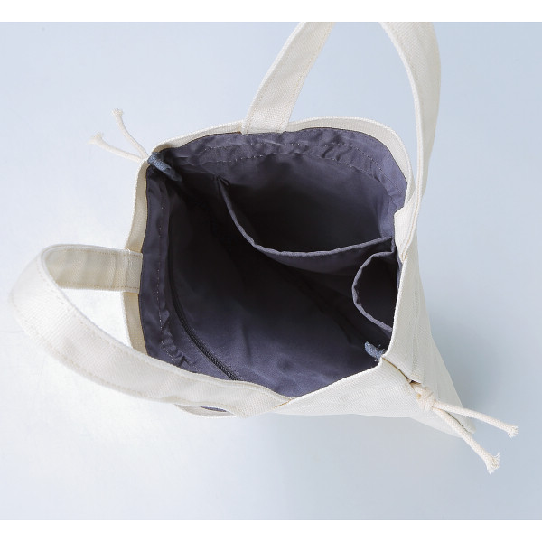 オンオフどんなシーンでも使い勝手の良いデザインが魅力の巾着タイプのキャンバストートバッグ。紐を絞ったり伸ばしたり、荷物の量に合わせて持ち方を変えられます。