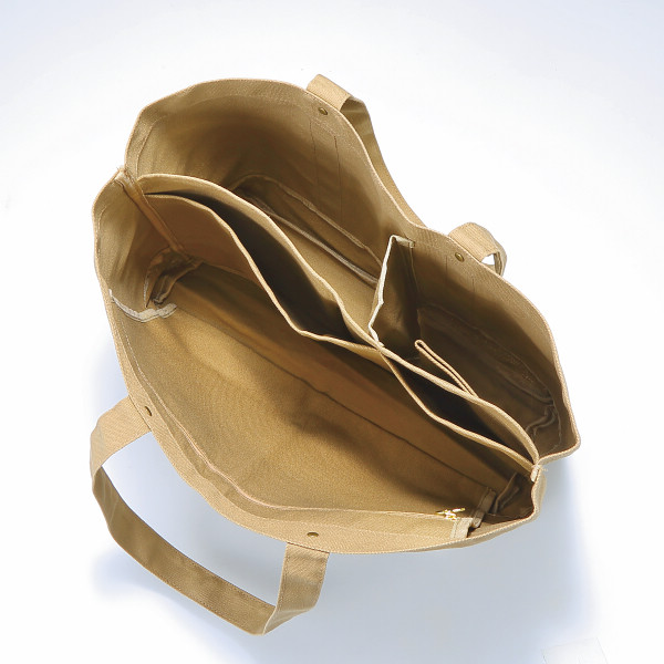便利な仕切りが付いたシンプルトートバッグ。内側に仕切りがついており、財布やペットボトルなどの必需品を細かく収納できます。A4が入る大きさで通勤・通学にもオススメ。動物モチーフの刺繍がポイントに。