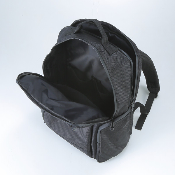 内容:前面=ファスナーポケット×3・背面=PCポケット×1、オープンポケット×2・側面=ファスナーポケット×2・内側=メッシュポケット×2、オープンポケット×1、ペン挿し×2開閉=ファスナー式
