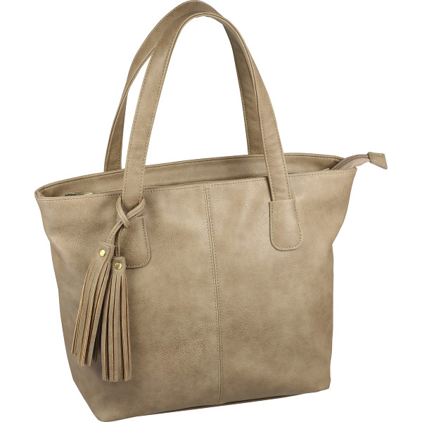 合皮 タッセル付きトートバッグ ベージュ