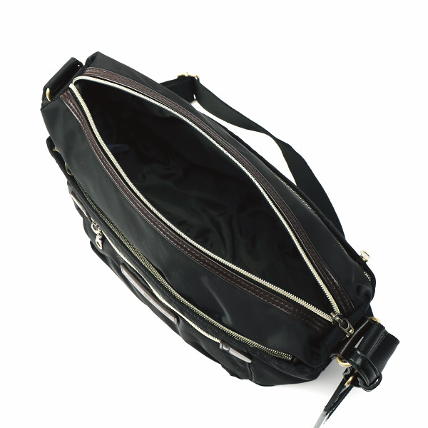 内容:前面=ファスナーポケット×2・背面=ファスナーポケット×1・内側=オープンポケット×2、ファスナーポケット×1開閉=ファスナー式