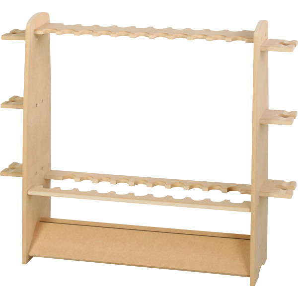 置き場所を選ばないシンプルな釣り竿ラック。最大で20本まで収納できます。両サイドにはリール掛けがあり6個まで収納できます。