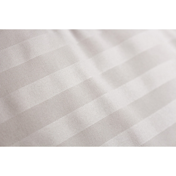 きらめくボーダーラインが高級感のある、ホテルライクな寝装シリーズ。なめらかな肌触りのエンボス加工ストライプ柄は、光の当たり方によってさりげなく輝き、まるでホテルの一室のような空間を演出します。気品も清潔感も感じさせるやさしい月明りのような色で仕上げた、優雅なデザインをお届けします。
