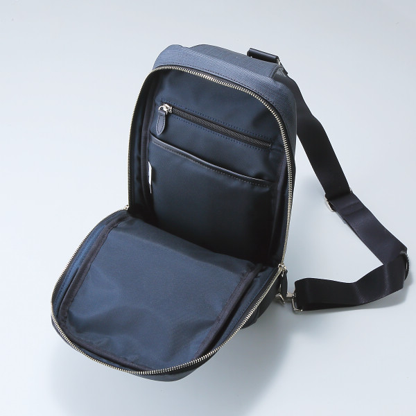 内容:前面=ファスナー式ポケット×1・背面=ファスナー式ポケット×1・内側=オープンポケット×1、ファスナー式ポケット×1開閉=ダブルファスナー式