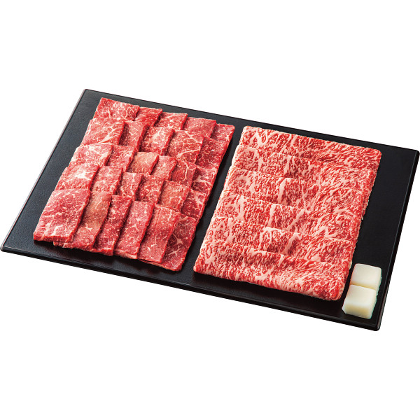 内容:東北産黒毛和牛モモ又は肩焼肉用500g、ロースすき焼き用350g