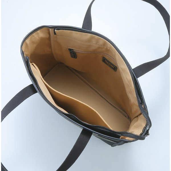 本体素材には高級感のあるポリエステルを使用。部分的に使用している牛革には厳選された国産の原皮に上品な型押し加工を施したものを使用し、幅広いシーンでお使い頂けるトートバッグになっています。
