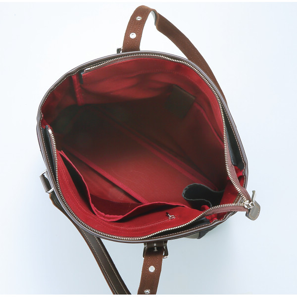 本体素材には撥水加工を施したヘリンボーン織りの生地を使用し、タケオキクチの世界観を表現しています。内装にはクッションポケット等便利なポケットを配置し、使いやすさも考えられたトートバッグです。
