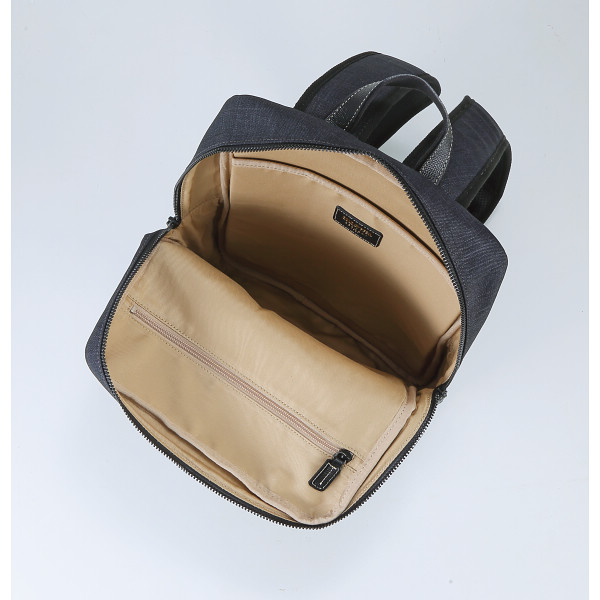 本体素材には高級感のあるポリエステル生地を使用。部分的に使用している牛革には厳選された国産の原皮に上品な型押し加工を施したものを使用し、幅広いシーンでお使い頂けるリュックサックになっています。