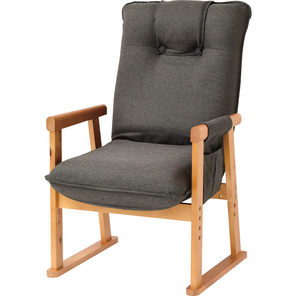 木製の肘付き高座椅子。座面の高さは、35~41cmの範囲で3段階に調整可能。低反発ウレタンを使用していますので、身体になじみやすく座り心地の良い座椅子です。リモコンや携帯電話入れに便利なサイドポケット付。背もたれ4段階。