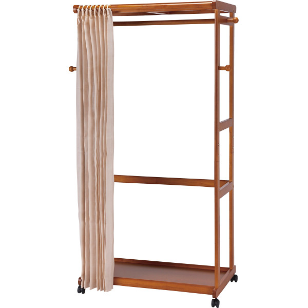 衣類をほこりから守るカーテン付き。棚にはバッグや小物等を置けるので便利です。
