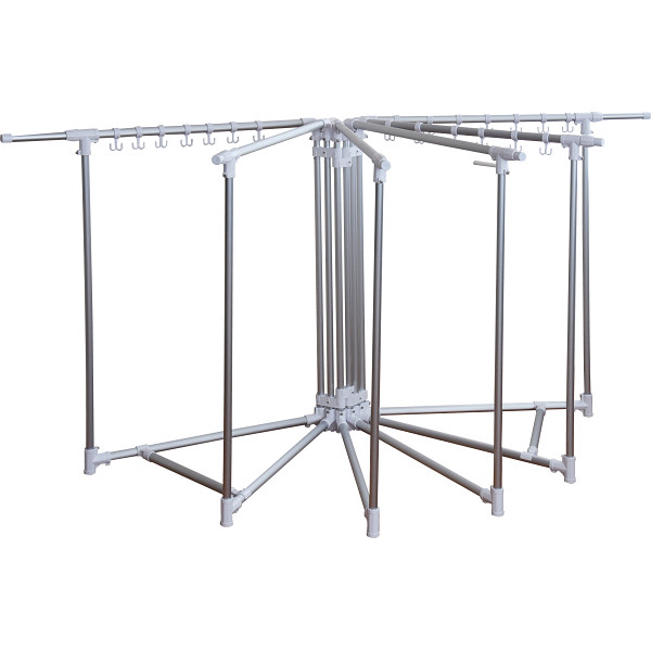 家族全員の布団が一度に干せ、女性でも簡単に持運びの出来る軽量アルミパイプの布団干し。6面全ての掛部が伸縮しますので大きなサイズの布団も干せます。転倒防止ストッパー付で安心です。ハンガーフック20個付。