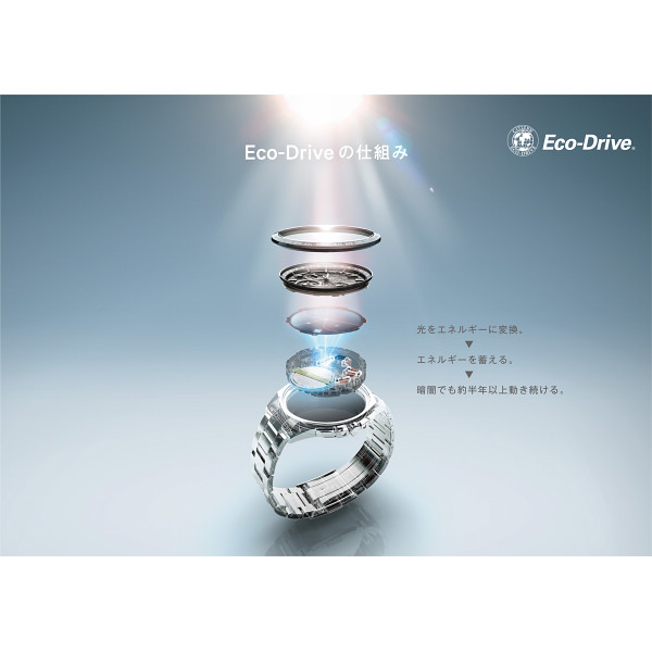 内容:日常生活用防水平均月差±15秒以内電池交換不要の光発電エコ・ドライブ(フル充電時連続6ヶ月持続して動き続けます。)両プッシュ観音開きタイプ